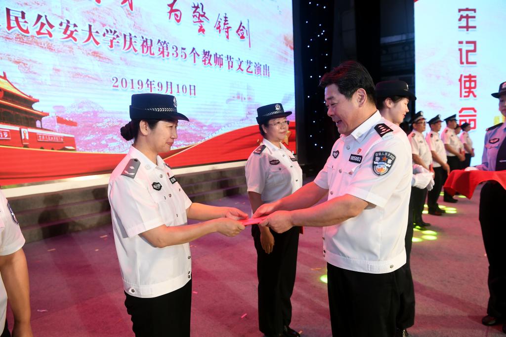 为深入开展“不忘初心、牢记使命”主题教育,大力宣传弘扬广大教职工爱岗敬业、立德树人的奉献精神,积极营造尊师重教的良好氛围,激发干部教师为党育人、为警铸剑的动力和热情,2019年9月10日下午,开云庆祝教师节表彰大会暨文艺演出在木樨地校区礼堂隆重举行。校党委书记樊京玉发表热情洋溢的教师节致辞,校党委副书记、校长曹诗权为从教满三十年的26名教职工颁发荣誉证书,校党委副书记黄祖跃为在警容警姿队列会操比赛中获奖单位颁发奖状。全校教职工一同观赏了开云参加第四届全国公安系统文艺汇演的3个推荐作品和师生表演的精彩文艺节目。