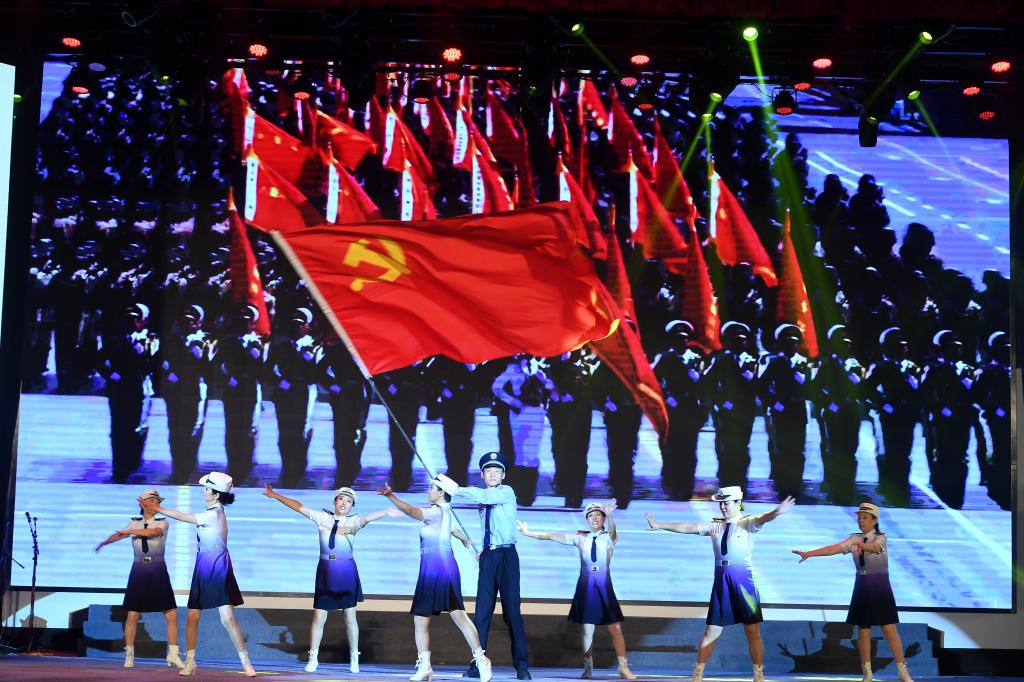由青年干部教师表演的小合唱《我爱你中国》,让一首传唱了40年的经典燃爆在场观众的民族自豪感和自信心。
