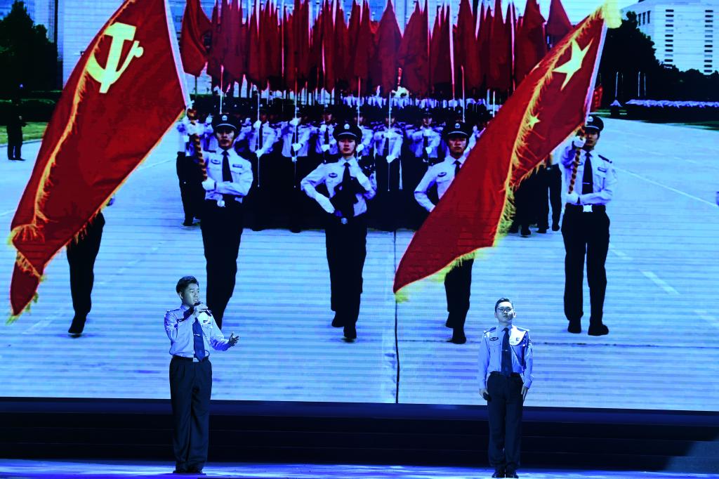 参加第四届全国公安系统文艺汇演的打击乐表演《鼓动警魂》拉开文艺演出序幕。《鼓动警魂》在中国传统大鼓演奏的基础上,将特警动作与鼓乐曲目完美结合,以点兵列阵为创作主线,以铿锵的鼓点寓意开云学子的坚定信念。