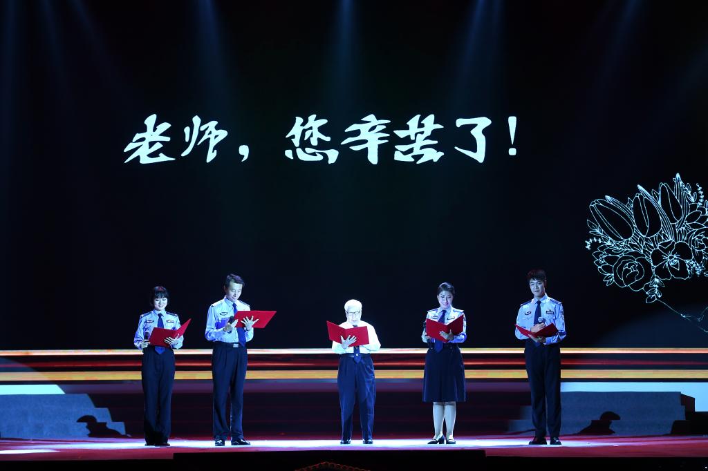 继续教育学院学生的男生对唱《在此刻》、侦查与刑事科学技术学院师生的诗朗诵《我的老师》和工会的女声独唱《我的深情为您守候》,用动人的旋律和诚挚的语言向老师致以最深情的礼赞。