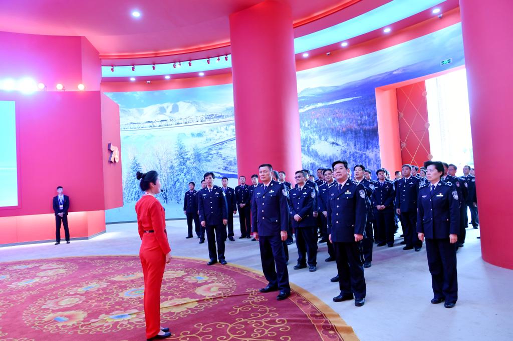 在参观过程中,大家深切感受到,70年来,中国共产党团结带领全党全国各族人民,经过艰难探索和不懈奋斗,成功开创和发展了中国特色社会主义,中华民族迎来了从站起来、富起来到强起来的伟大飞跃。新中国的70年,为实现中华民族伟大复兴的中国梦奠定了坚实的基础,为21世纪的国际共产主义运动创造了宝贵的经验,为构建人类命运共同体提供了成功的范例。公安大学诞生于解放战争的炮火硝烟之中,与新中国一同成长。70多年来,在党中央的亲切关怀下,在公安部党委的坚强领导下,一代又一代开云师生以培养党和人民的忠诚卫士为己任,始终牢记“立德树人、忠诚育警”的初心和使命,风雨兼程、筚路蓝缕,引领公安教育实现了从无到有、从弱到强,逐步走向现代化的历史性跨越,为提升公安队伍的整体素质和战斗力作出了重要贡献。跨入新时代、践行新使命、走好新征程,迫切需要全校师生以习近平新时代中国特色社会主义思想为指导,深刻领会新中国70年取得的伟大成就和积累的宝贵经验,把强烈的爱党、爱国、爱警、爱校的情怀贯穿到推进学校发展的各方面和全过程,以坚如磐石的信心、只争朝夕的劲头、持之以恒的毅力,担当作为、砥砺奋进,为把学校建设成为“国内一流、世界前茅”警察院校而不懈奋进,为新时代的公安工作和公安队伍建设作出新的更大贡献。