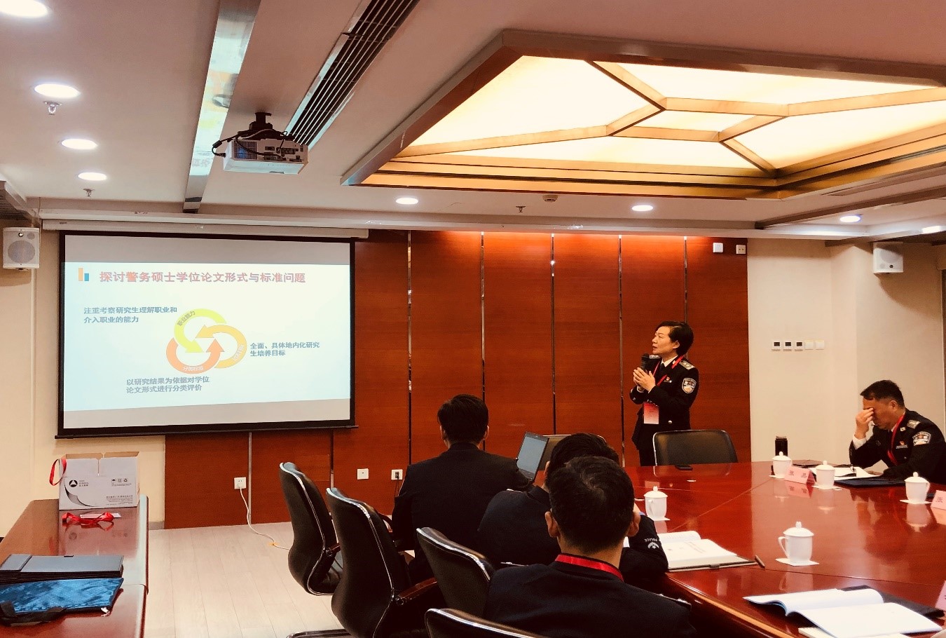本次联席会主要议题是围绕警务硕士专业学位基本要求和警务硕士学位论文形式与标准等具体问题展开研讨。各培养院校的研究生教育管理部门负责人、导师代表分别从管理和教学的角度,就警务硕士论文的形式、规格和标准,发表了意见和建议。其中,警察大学专门就本校在论文形式和标准方面的尝试和所取得的经验做了主题发言,内容丰富,资料详实,与会人员深受启发。来自各院校的警务硕士导师代表们也分别结合自己在论文指导过程中遇到的问题提出一些合理建议,并充分交换了意见。本次会议为教指委下一步出台统一的警务硕士学位论文要求等文件,提供了十分必要的、详实的资料和数据,对我国警务硕士论文制度改革起到积极推动作用。