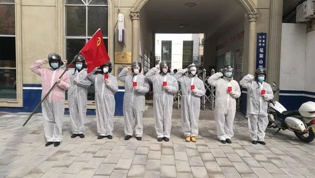 白色的战袍,和藏蓝一样的守望与担当;高举的旗帜,让团支部成为共同的精神符号。8位平均年龄19岁的预备警官加入石首市笔架山派出所抗疫专班,聚在抗疫一线成立“临时团支部”,对疫情阻击战发出冲锋的号角,他们的谦逊文明与理性严整成为这场疫情攻坚战中坚实的盾牌。