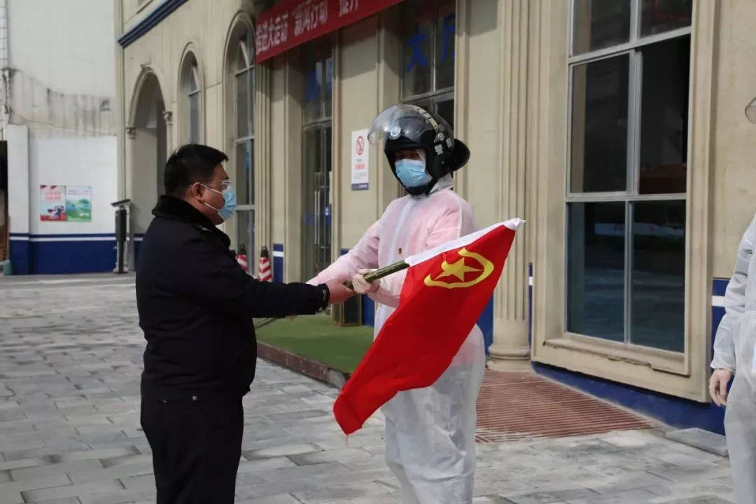 2月8日早,在石首市公安局笔架山派出所,这支年轻的志愿者队伍经过简短的授旗仪式,正式加入笔架山派出所抗疫专班。