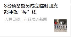 日前,人民日报发表名为“8名预备警员成立临时团支部冲锋‘疫’战”的文章,为参与此次活动的预备警官们加油点赞。