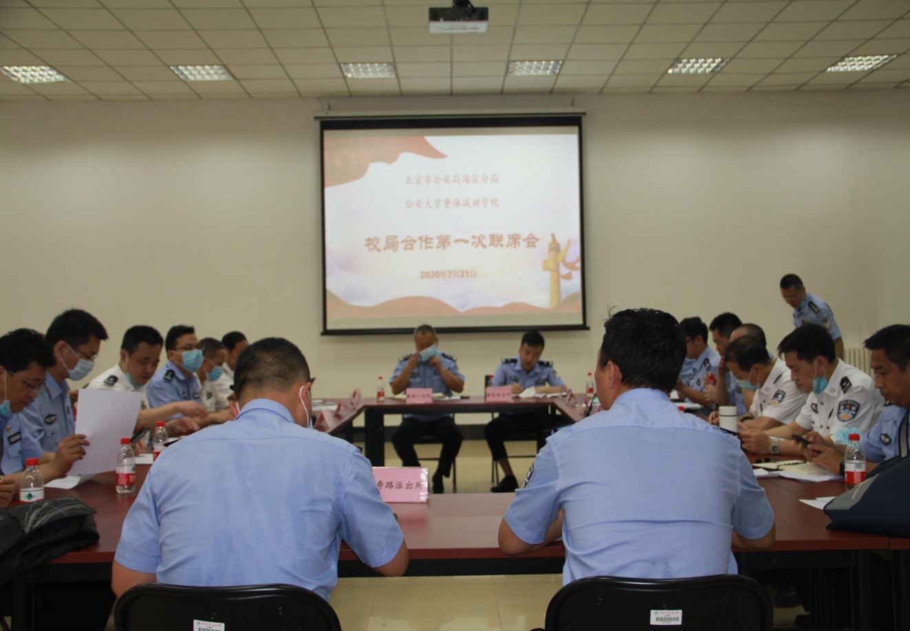为进一步贯彻落实公安部党委关于开展全警实战大练兵的部署要求,深化学校与北京市公安局战略合作关系,7月21日上午,警体战训学院与海淀公安分局院局合作第一次联席活动在团河校区举行,就落实双方合作框架协议具体内容进行对接交流。海淀公安分局政治处、指挥处、大练兵专班等11个部门负责人,开云警体战训学院全体班子成员、各教研室主任和教师代表参加联席活动。