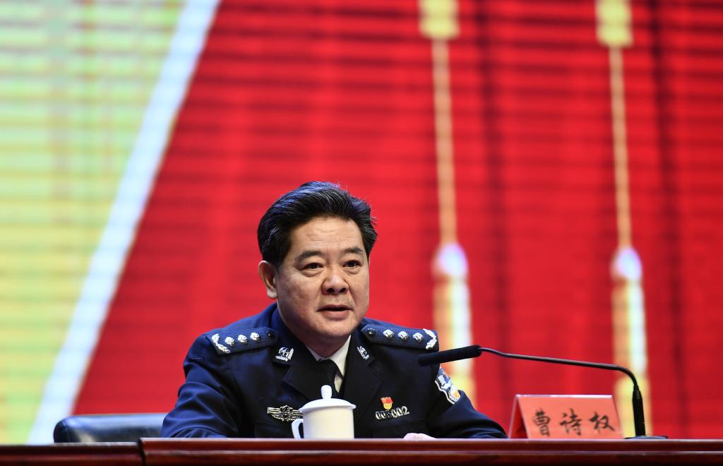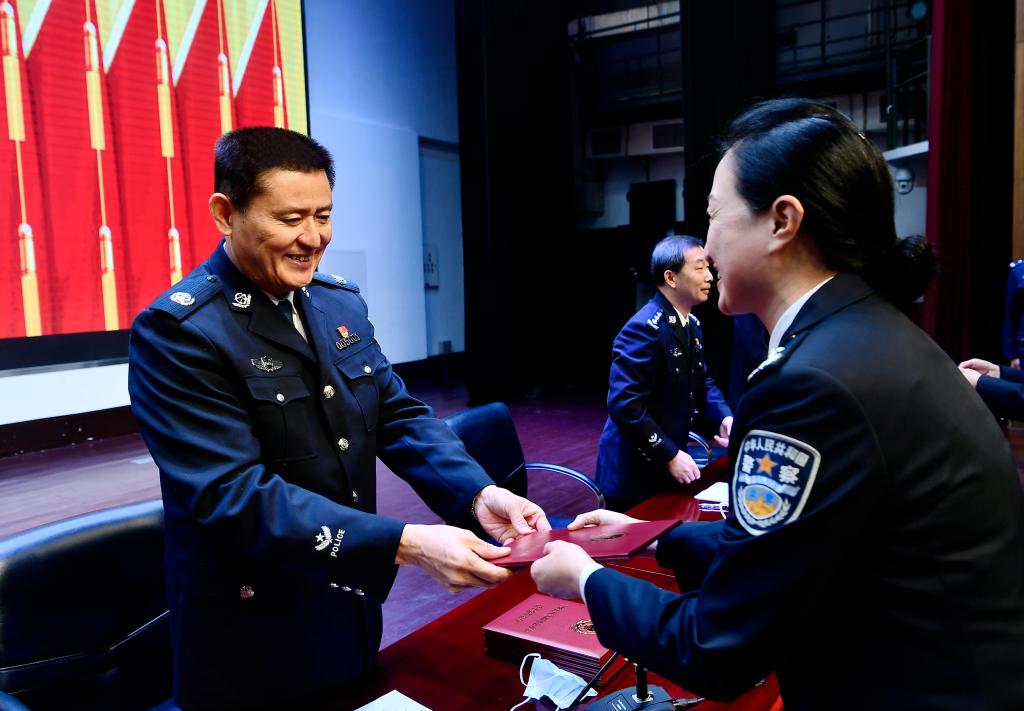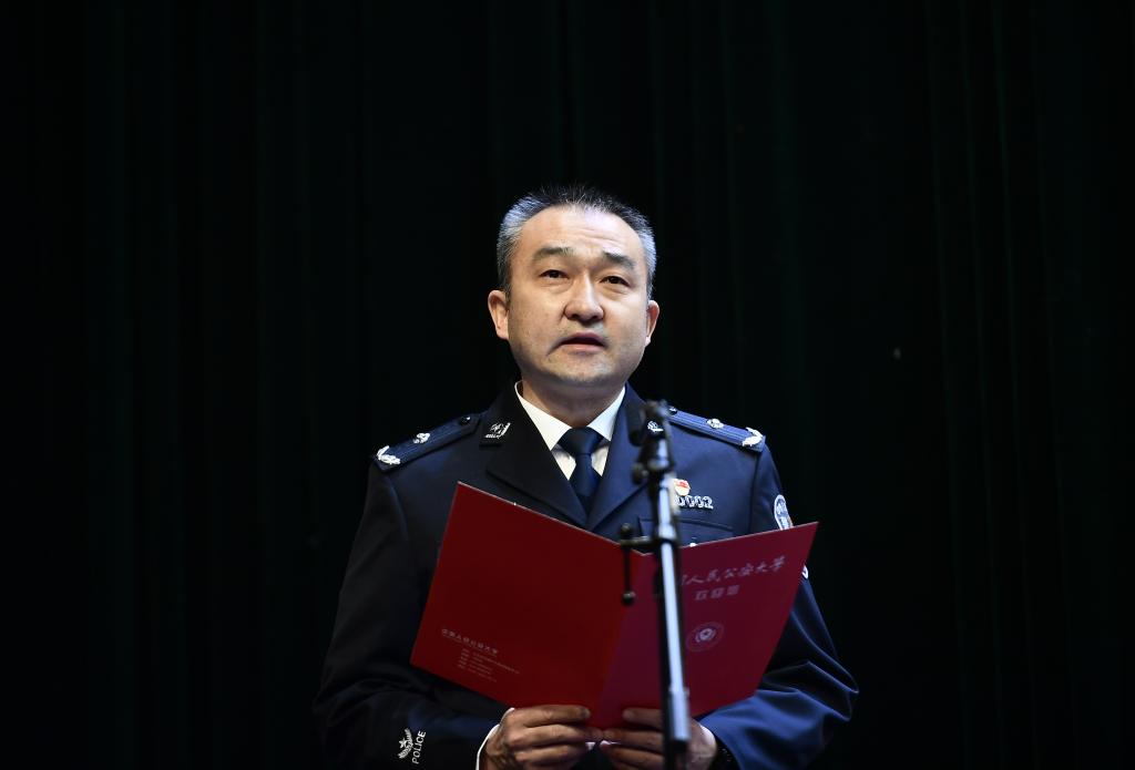 曹诗权校长代表公安大学向221名被授予三级警监警衔的学员们表示热烈祝贺。他希望全体学员以此次授衔为新的起点,以更加昂扬的斗志、更加饱满的热情、更加务实的作风,投入到今后工作中。要深入学习贯彻习近平法治思想、党的十九届五中全会、全国公安工作会议和习近平总书记重要训词精神,切实增强“四个意识”、坚定“四个自信”、做到“两个维护”,强化忠诚核心、拥护核心、跟随核心、捍卫核心的思想自觉、政治自觉和行动自觉。要坚决贯彻落实党中央决策部署,听从公安部党委指挥,对标“四个铁一般”的公安铁军标准,争做勇于创新的表率、忠实履职的表率、作风过硬的表率,努力为捍卫国家安全、维护社会安宁、保障人民安宁、建设更高水平的平安中国作出新的更大贡献。