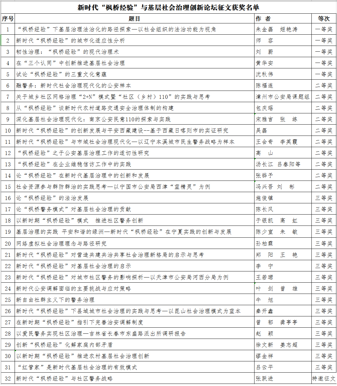 关于公布新时代“枫桥经验”与基层社会治理创新征文获奖名单的通知