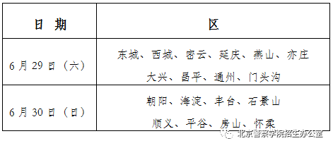 完成政治考察的考生,请于6月29、30日到北京警察学院进行加试。加试时需持高考准考证、身份证或户口簿、《政治考察表回执单》、1张1寸免冠彩色照片,着运动服、运动鞋,自备饮水,不要求空腹。每日加试时间为:8:00—15:00。加试分区进行:
