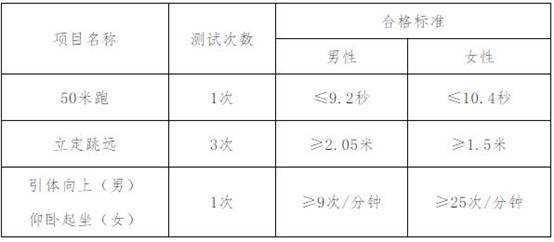 体能测评的项目和标准,按照《国家学生体质健康标准(2014年修订)》的有关规定执行。具体如下: