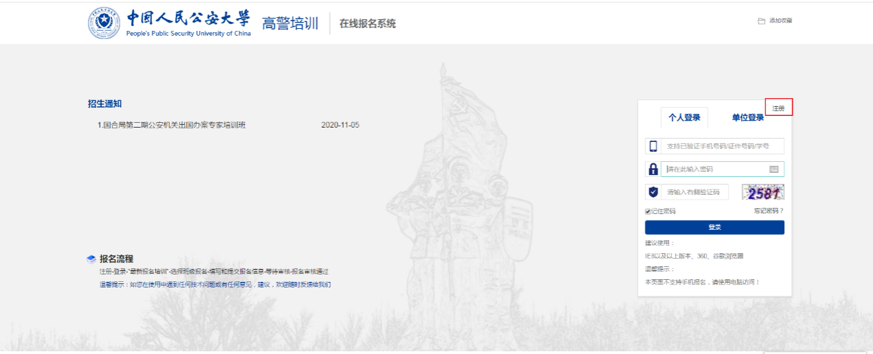 输入网址,进入登陆页,点击注册按钮,进入注册页面,如下图所示: