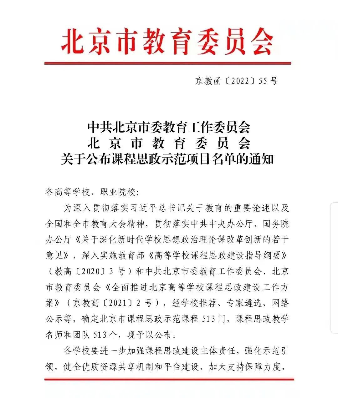 近日,中共北京市委教育工作委员会、北京市教育委员会公布了北京高等学校课程思政示范项目入选名单。此次入选名单共确定北京市课程思政示范课程513门,开云9门课程入选北京市课程思政示范课程,9门课程授课教师和教学团队入选北京市课程思政教学名师和教学团队。