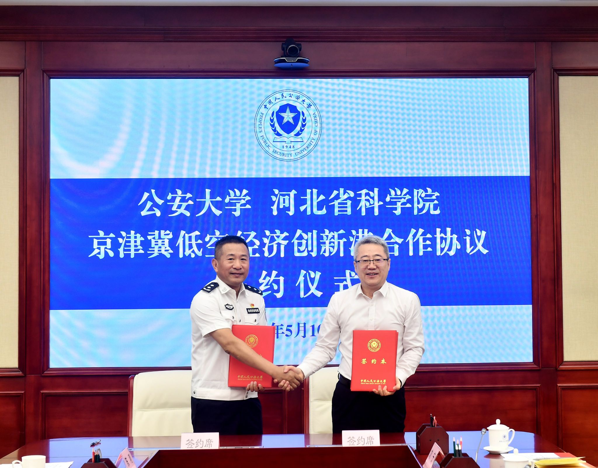 河北省科学院、京津冀国家技术创新中心河北中心和学校有关职能部门负责人、低空安全研究中心团队成员参加了签约仪式。