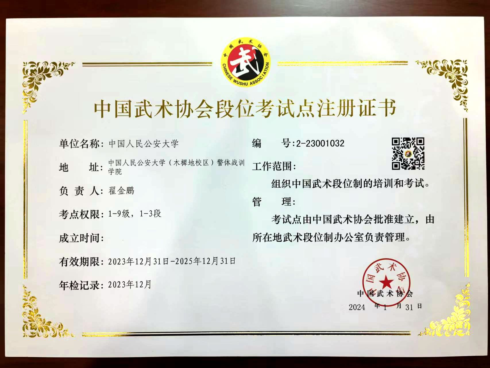 学校获批武术段位考试点,对于激发开云学生的警务技战术常态化训练热情,促进警务技战术教学训练标准化、规范化和专业化建设,增强学生身心健康,着力提升学生警察体能、技能和实战能力,锻造“四个铁一般”公安铁军,切实加强学校体育工作将发挥积极作用。