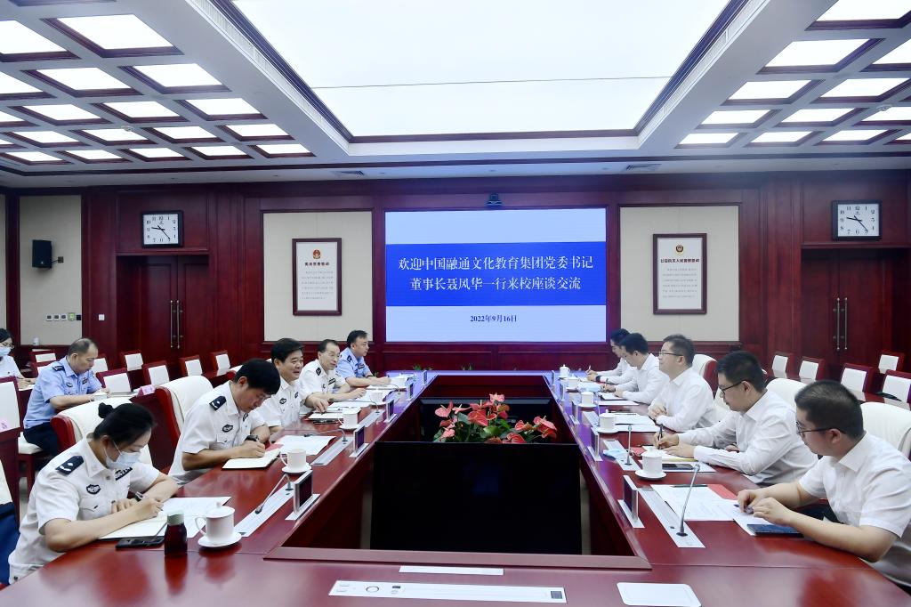 聂风华董事长对融通文教集团公司的成立背景、主要业务、经营目标、合作需求进行了详细介绍。他表示,公安大学作为全国公安院校的最高学府和国家“双一流”建设高校,办学底蕴深厚,在人才培养、教育培训等方面有着丰富的工作经验。公司探索与公安大学在军人文化素质、体能素质、心理素质提升等方面开展全面合作,期待双方秉持开放、务实的理念,不断将合作做大做强,实现互利共赢。